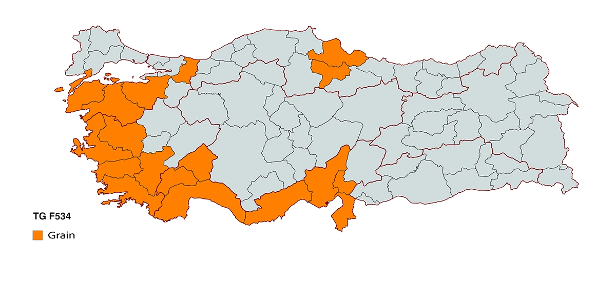 Thanks to its powerful root and stalk structure, F534 shows excellent adaptation to different climatic conditions and provides tolerance against multiple diseases.